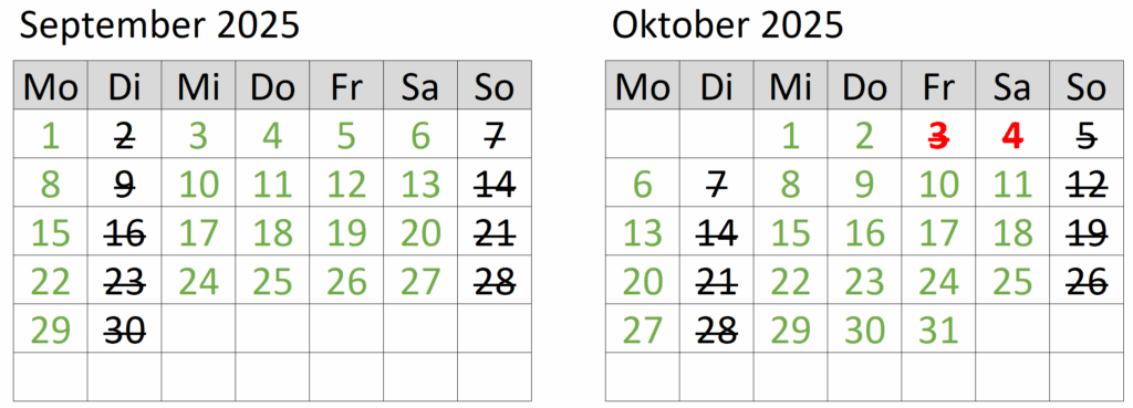 In den Herbstferien haben wir geöffnet, am 3. und 4. Oktober jedoch geschlossen!