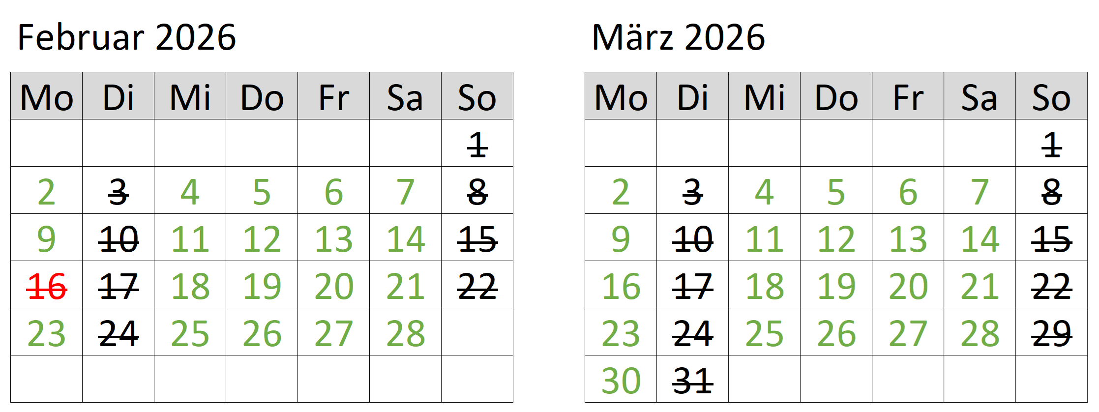 Unsere Öffnungszeiten im Februar und März